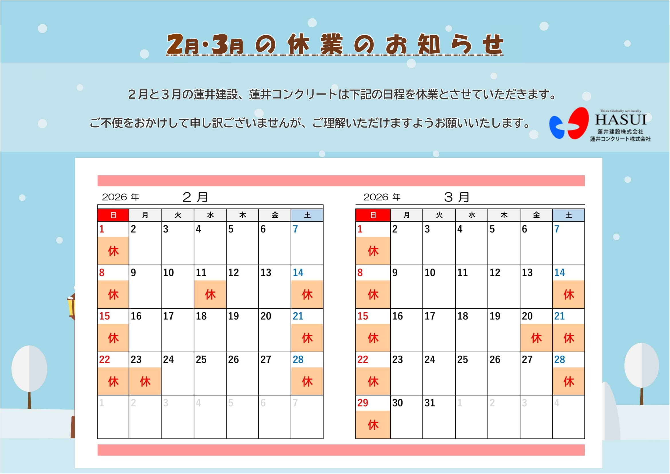 R8.2月R8.3月休業のお知らせ